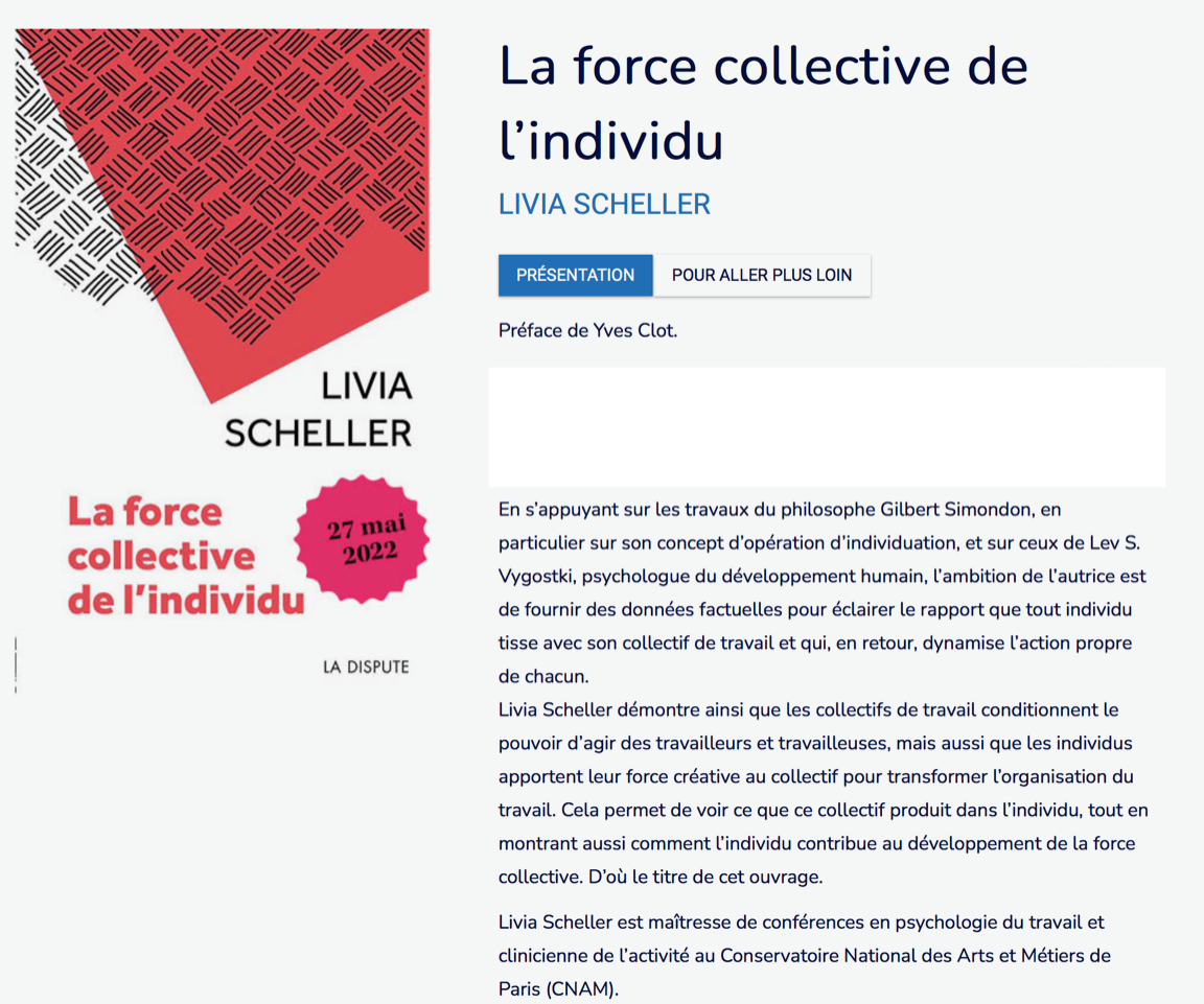 Livia Scheller (2022) "La force collective de l'individu". Edition La dispute